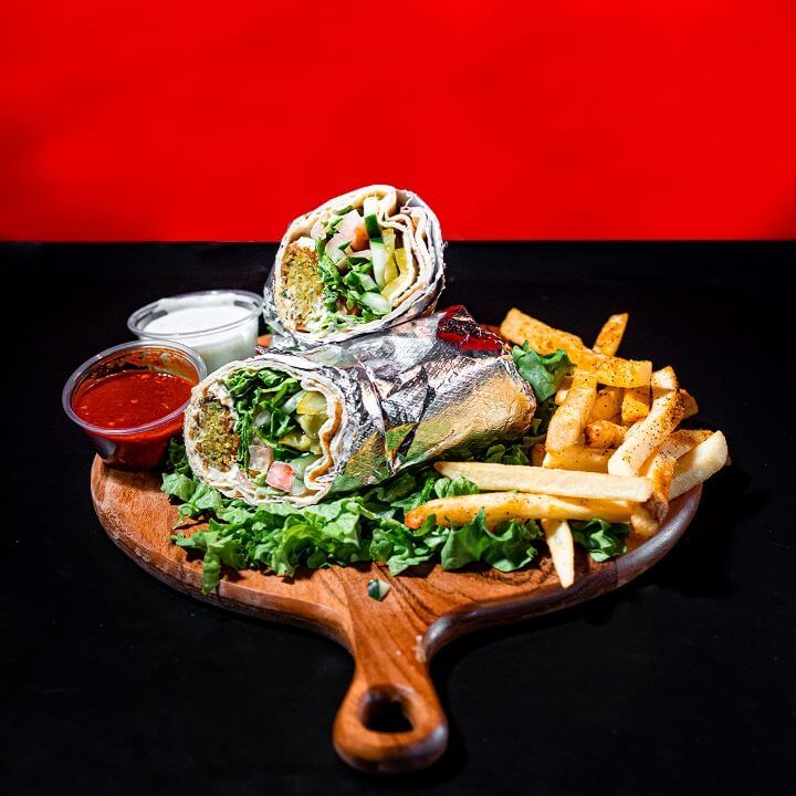 Deep fried veggie balls, made fresh to order, wrapped in pita bread. Contains tahini sauce, Tomato, cucumber, pickles, and hummus.