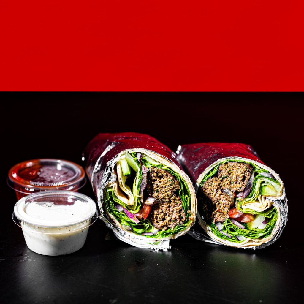 Grilled ground beef kofta wrapped in pita bread with lettuce, tomato, and onions. Served with our house-made white sauce.