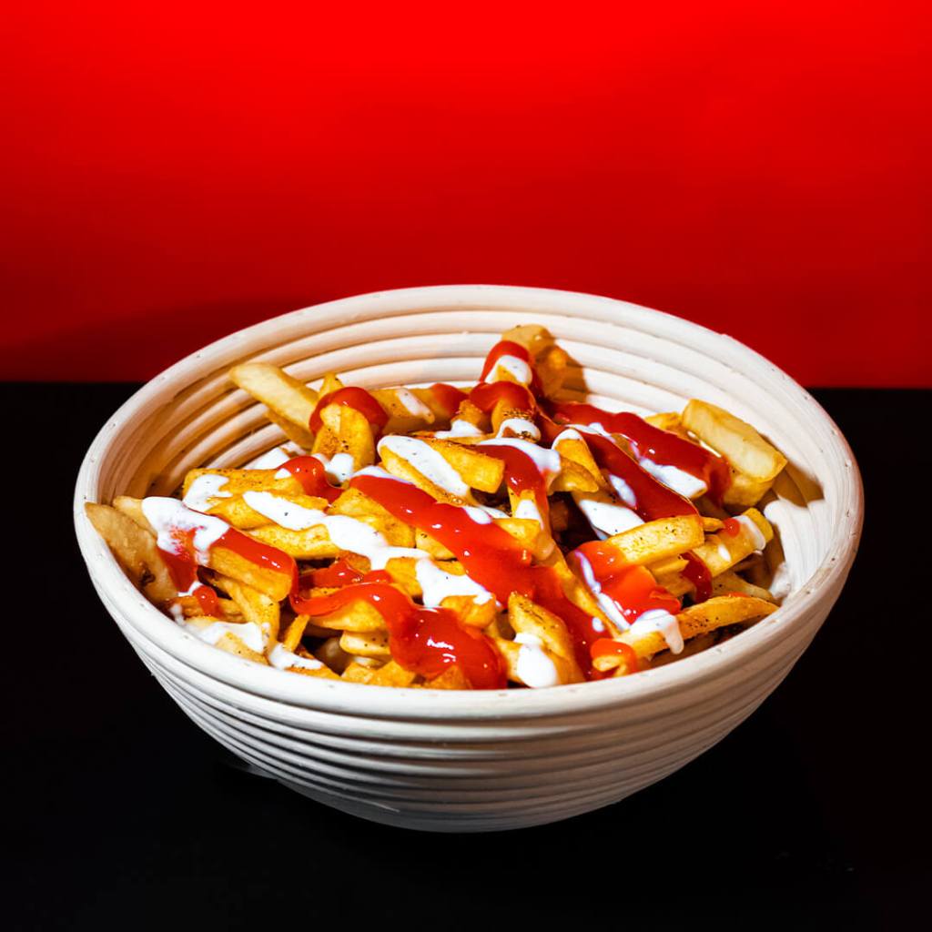 Zabiha 100% halal patty topped with lettuce, tomato, onion, and pickles. All perfected with our signatures sauces and sandwiched with buns. Served over some French fries!
